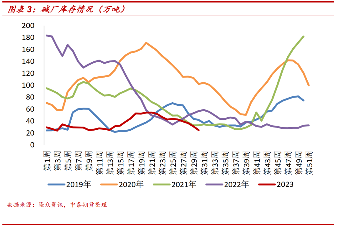 of the plant Before July this year, the operating rate of soda ash has been maintained at more than 90%, and the supply reduction caused by plant failure and maintenance is very small, far less than in previous years. The main reason is that after yuanxing Energy is put into operation on schedule, the price reduction is expected to be larger, so the alkali plant has been maintaining a high operating rate to maximize benefits, and even for the traditional summer maintenance season, the market also has the expectation of delayed maintenance.